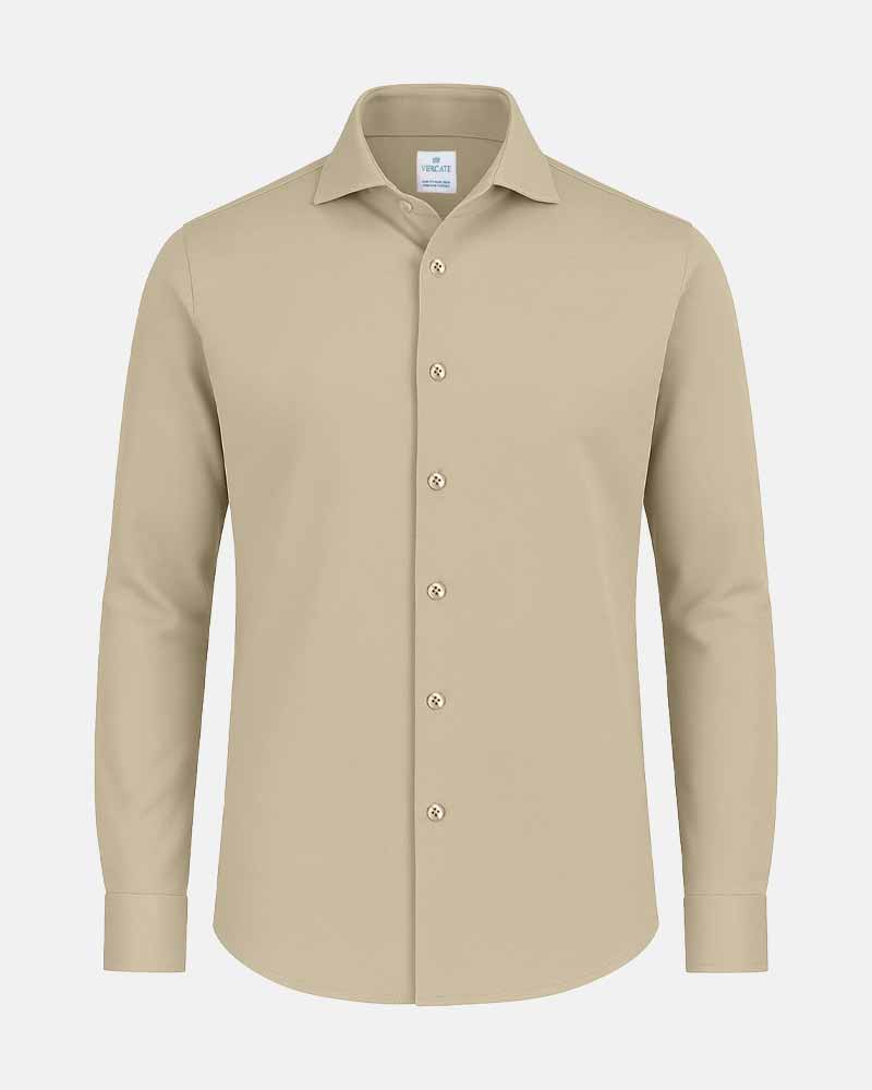 Strijkvrij Overhemd - Japanese Knitted - Beige